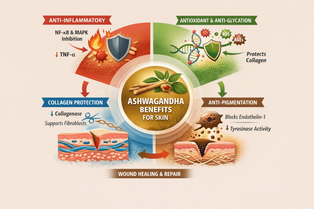 In plain terms: it soothes inflammation, protects structural proteins, helps correct pigmentation, and speeds tissue repair. When suppliers standardize extracts to defined withanolide levels, the results are repeatable.