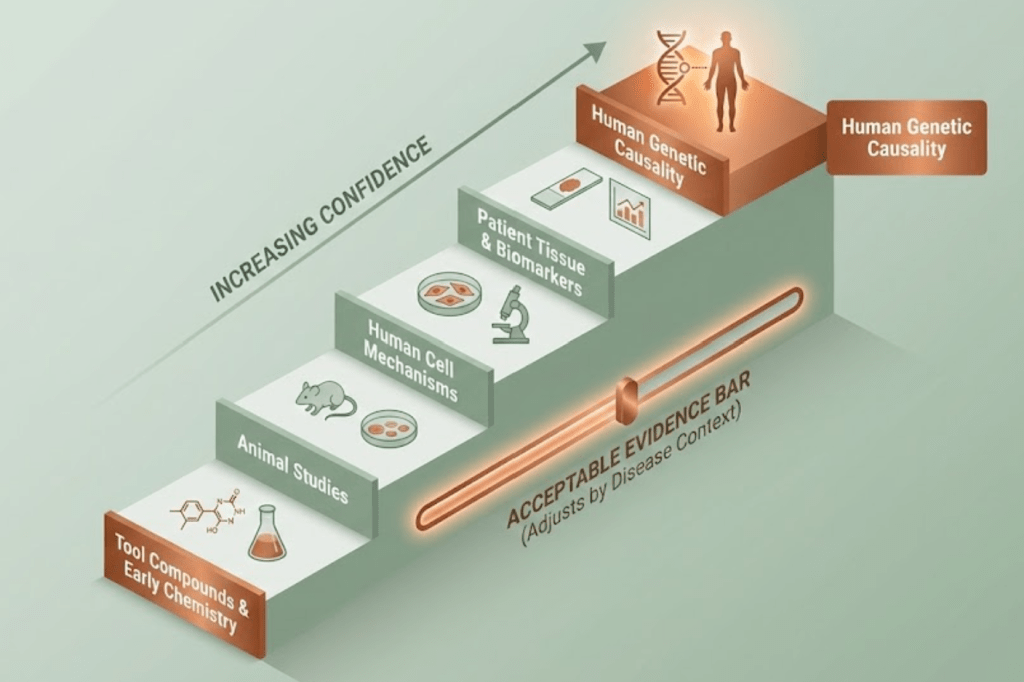 For each target on your list, ask whether human genetic evidence connects it to the disease or a related trait. If yes, it likely deserves more attention. If no, identify the fastest experiment that could clarify its role.